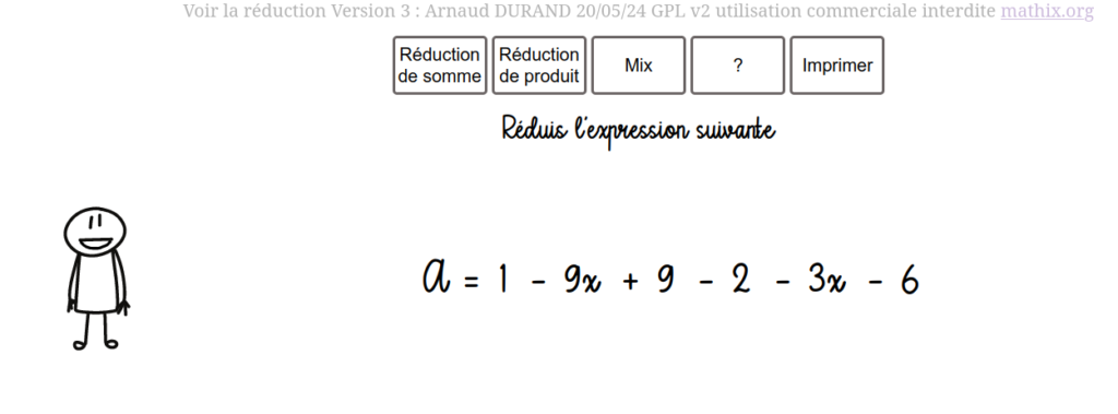 Et voilà!! Enfin ! Maintenant l’exerciseur permet de générer des feuilles d’exercices qui possèdent un QR_code, on le scanne et hop, numériquement on peut réduire l’expression, cela permet d’avoir une aide pour réduire.