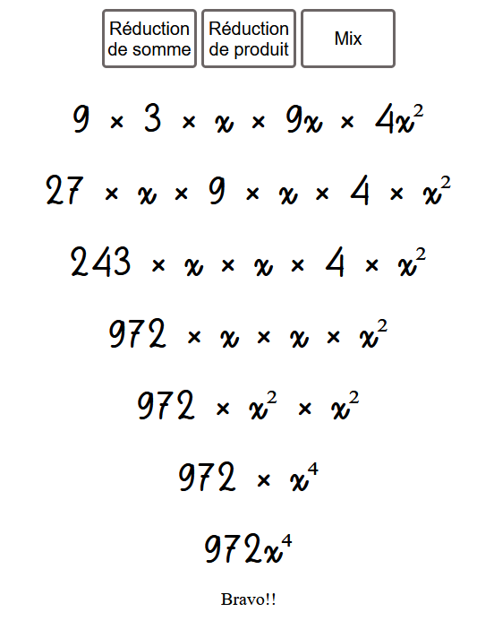 Voici où trouver l’exerciseur : https://mathix.org/reduction